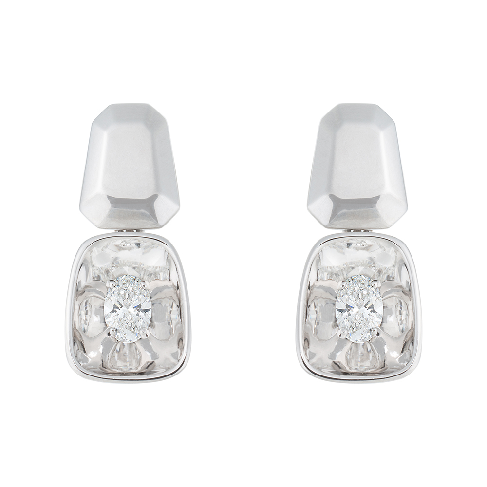 Look earrings, 18k polished white gold, set with 0.62 carats oval-cut white diamonds.
