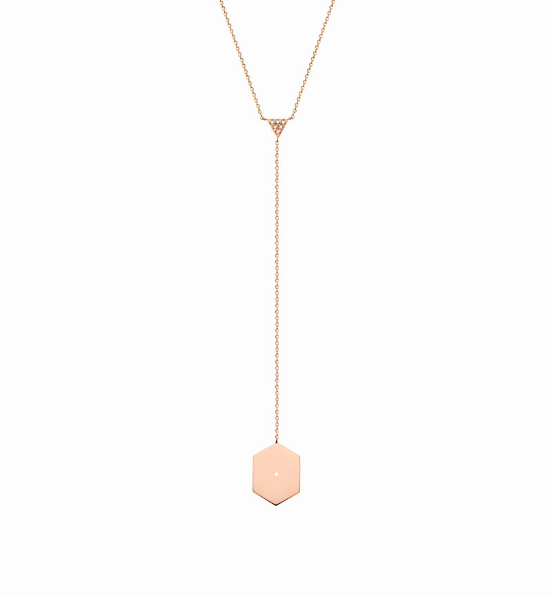 14K yellow and pink gold “Mini Hexagon” diamond necklace with white (0.024ct) brilliant cut Diamonds.